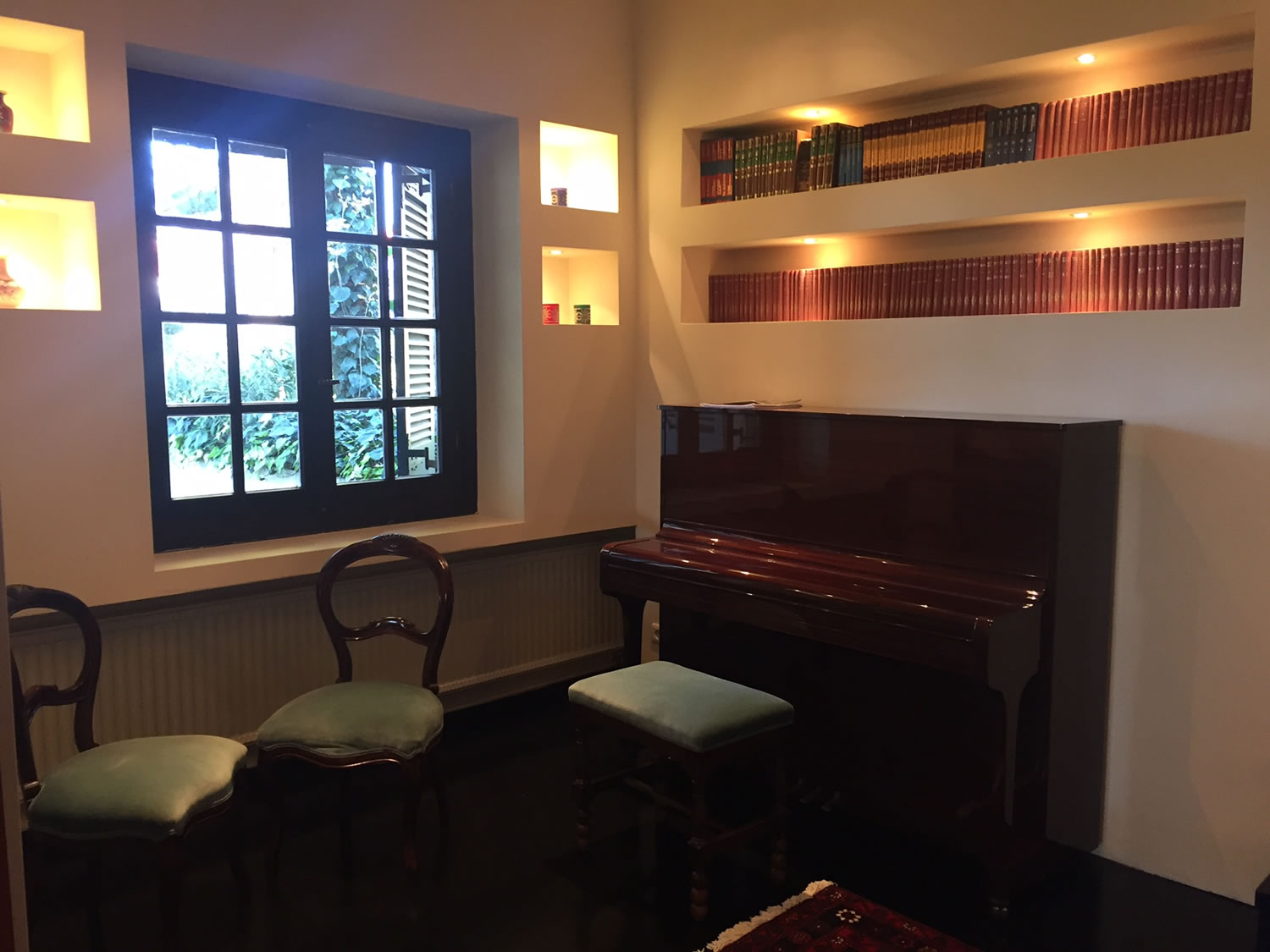 Από την κεντρική είσοδο, την βιβλιοθήκη και έως τα συνεχόμενα σαλόνια, τα συλλεκτικά έργα τέχνης, οι αυθεντικοί πίνακες Ελλήνων ζωγράφων, οι μοναστηριακοί πολυέλαιοι, το πιάνο κάθε λεπτομέρεια αποπνέει ατμόσφαιρά και στυλ.